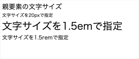 emは親要素の文字サイズの倍率(1em=等倍)で指定するため、同じ数値を指定しても、親要素の文字サイズによって表示される結果が変わります。